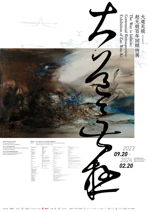 9月19日,“大道无极——赵无极百年回顾特展”在中国美术学院美术馆盛大开幕。本次展览为杭州第19届亚运会重要文化项目、2024中法文化旅游年项目、浙江省文化艺术发展基金重点项目,由中华人民共和国文化和旅游部、中国文学艺术界联合会、浙江省人民政府主办,得到法国驻华大使馆、中国驻法国大使馆、中国驻瑞士大使馆特别支持,由中共浙江省委宣传部、中国美术家协会、浙江省文学艺术界联合会、浙江省文化和旅游厅、浙江省教育厅、杭州市人民政府、中国美术学院承办,法国驻上海总领事馆、法国文化中心、佳士得协办,中国美术学院美术馆与赵无极基金会联合策划。