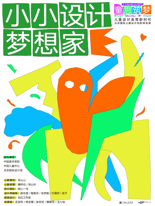 人之初计划OUTSET “童思筑梦——儿童设计美育新时代”展览由中国美术学院、中国儿童中心、北京国际设计周主办,分“为儿童而设计”、“请儿童来设计”两大版块。“为儿童而设计”版块呈现了九家不同院校、机构的儿童美育实践案例和多位创作者的艺术创作。通过各方向穿插交汇的实践、探索和研究内容,以及对于儿童美育的理解、秉持的理念,课程的研发与设置出发所提炼而成的“核心理念模型”的呈现,勾勒出当下同行者众的儿童美育实践路径的多样和丰富。“请儿童来设计”板块展出内容“以儿童为中心,以装置为表达”,通过艺术的教育,以诗意的视野窥探世界,让每一个孩子成为生活的艺术家。展览汇聚了来自全国各地3000多名儿童的艺术创作,从儿童关心的“ 自然、生活、文化、创新、情感”五个面向出发,将设计的主动权交给儿童,用装置的创作形式表达儿童敏锐的洞察力,和他们围绕如何“设计人与自然的和谐关系”、如何“设计一个未来观”、如何“设计我们与文化的关系”的思考。