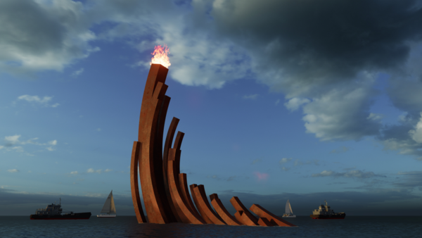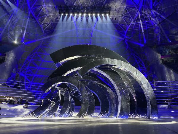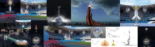 经过亚组委评审专家们的重重筛选,在众多设计方案中由林岗领衔设计的“钱江潮涌”最终脱颖而出。设计团队以同舟共济的态度克服了一个又一个的困难,最终以最佳的姿态展示在大莲花体育馆亚运会开幕式的中轴线上,以筑浪为山的理念营造出一座亚运丰碑,点燃了亚运开幕式的圣火。