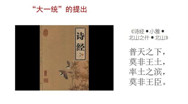 回溯中国五千年的文明发展史,大一统贯穿始终,延续不辍,代有递嬗。从青铜器何尊的“宅兹中国”铭文到《诗经》所言:“普天之下,莫非王土,率土之滨,莫非王臣”,从孟子所言“君仁臣义,君民同乐,天下定于一” ,秦始皇统一六国建立秦朝到汉代大儒董仲舒提出“大一统者,天地之常经,古今之通义也”,中国逐渐发展为以国家的统一、社会的稳定作为最高核心价值的多民族交融的统一国家,中华文化里的大一统思想根深蒂固。