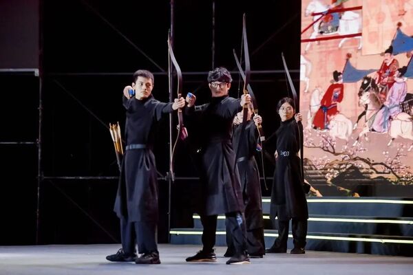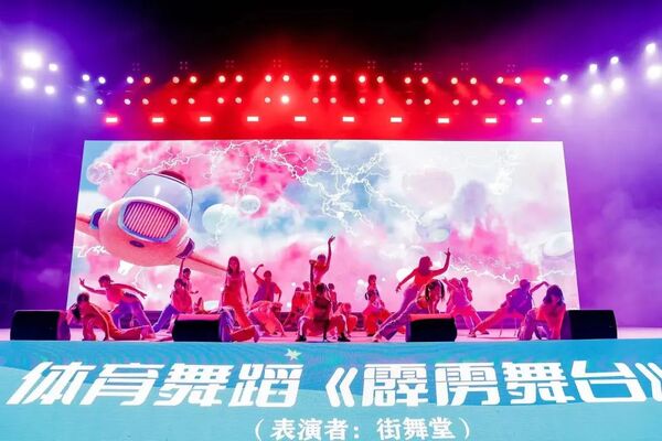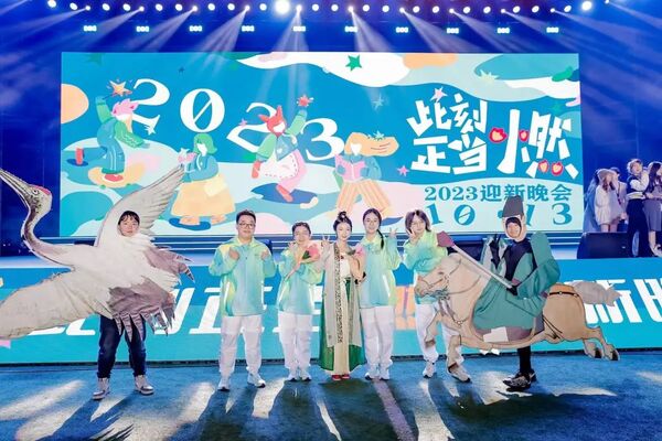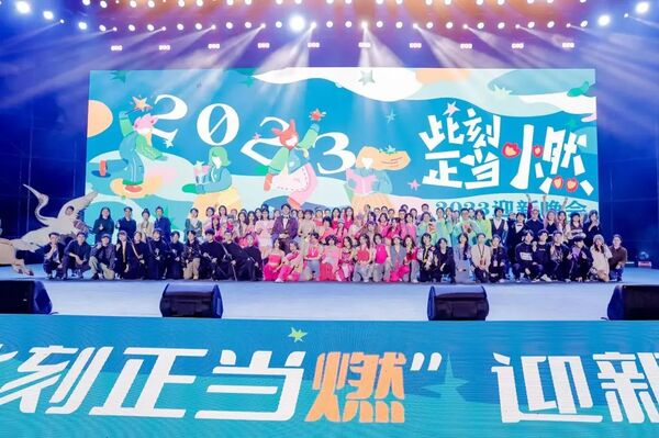 “此刻正当燃”。在绚烂的灯光下融合亚运情景和音画美境的迎新晚会节目热闹开演。