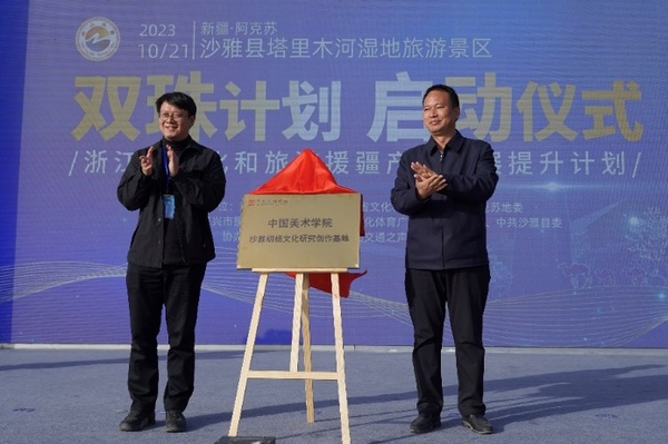 10月21日下午,由浙江省援疆指挥部、浙江省文化和旅游厅、阿克苏地委共同主办的浙江文旅援疆“双珠”计划启动仪式,在新疆阿克苏地区沙雅县举行。仪式上,中国美术学院与浙江省援疆指挥部签署战略合作协议,双方将积极推动各项领域合作,共同擦亮“丝路古龟兹·神奇阿克苏”文旅品牌,共同开展重大文旅课题研究,聚力打造国家级研学示范基地。