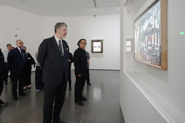 2023年10月25日上午,意大利驻华大使安博思来访中国美术学院,在院长高世名的陪同下一同参观了“大道无极——赵无极百年回顾特展”并开展座谈。