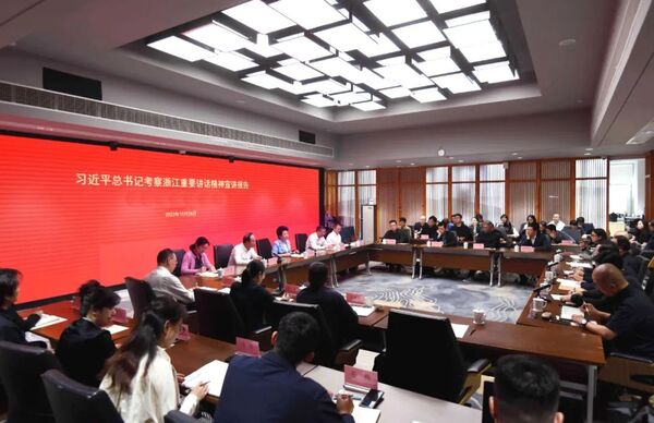 金一斌在主持时表示,中国美术学院始终坚守初心使命,忠实践行“八八战略”,认真贯彻落实习近平总书记的重要指示精神,全力打造“体现中国文化艺术研究和教学最高水平的世界一流美术学院”。立足新时代新征程,全校上下要提高站位,充分认识学习好、宣传好、贯彻好习近平总书记考察浙江重要讲话精神的重大意义,将其作为当前和今后一个时期的重大政治任务;要抓牢重点,在深化、内化、转化上下功夫,切实把学习宣传贯彻习近平总书记重要讲话精神,化作打造“世界一流美术学院”的实绩实效;要对标对表,紧紧围绕习近平总书记赋予浙江的新期待新定位,切实发挥学校育人主阵地作用,发挥国美学科专业和人才优势,推动中华优秀传统文化创造性转化、创新性发展,在提升中国文化感染力和中华文明影响力方面,贡献国美的智慧和力量。中国美术学院全体师生将牢记嘱托,勇毅前行,认真贯彻落实习近平总书记重要指示精神,以建设成为“世界一流美术学院”的优秀业绩,向历史交出一份高分答卷。