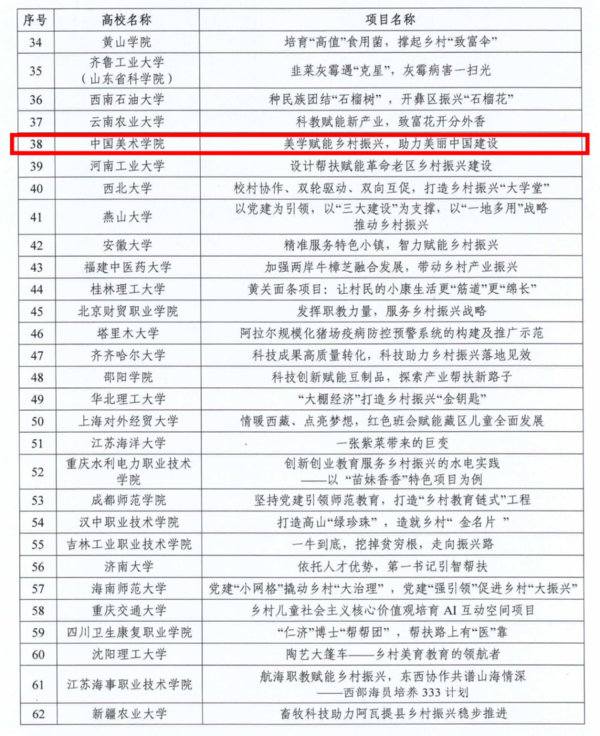 近日,由教育部组织开展的“第六届省属高校精准帮扶典型项目”评选活动中,我校《美学赋能乡村振兴 助力美丽中国建设》入选。