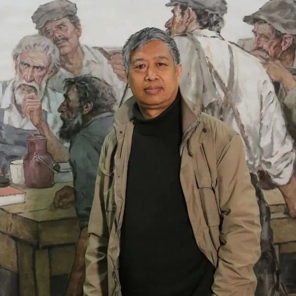 茹峰受浙江省美术家协会副主席、秘书长王敏杰的委托,代表浙江省美术家协会、浙江画院对吴宪生老师的展览开幕致以最诚挚的祝贺。他认为,吴宪生老师以生活为源泉,关注人、关注生活、关注时代,以古朴厚重、深情饱满的笔墨语言塑造了一系列具有时代意义的经典艺术形象,用兼备个性、共性与时代性的“人民形象”生动诠释了现实主义与当下中国、当下中国人、当下中国美术融合后迸发出的创造力。吴老师是中国新时代重大历史题材美术创作的领跑者,先后绘制了《十送红军》、《〈资本论〉在工人阶级中的传播》、《耕者有其田》、《沉重的手印》、《春暖十八洞村》等鸿篇巨制。他把个人情感与民族兴亡、人类的命运融为一体,以画存形为时代铸魂。吴宪生老师继承了浙派人物画的学术脉络,借古开今中西融贯,为浙派水墨人物画开创了新的艺术境界,为人、为艺、为学都是后学的楷模。