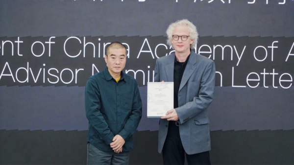 中国美术学院副院长曹晓阳向各嘉宾颁发项目学术顾问特聘书