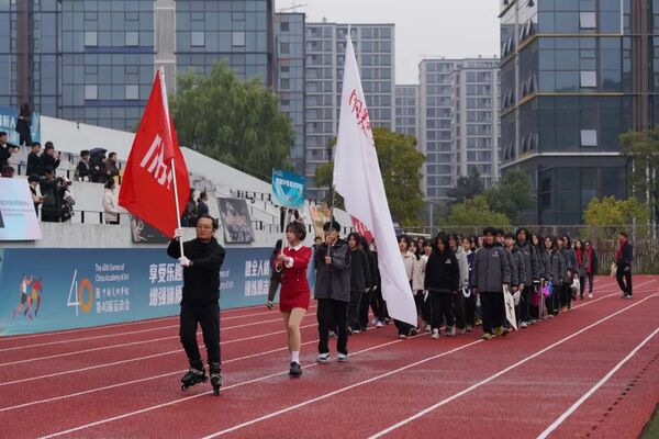 开幕式上,刘正总结了我校过去一年在体育事业上取得的可喜成绩,学校重视体育教育,并通过改善运动场地和设施为学生营造更好的运动环境,包括良渚校区皮划艇平台建设等均已提上日程。希望师生通过运动会积淀一往无前的力量,让艺术的生命折射出智慧的光芒。