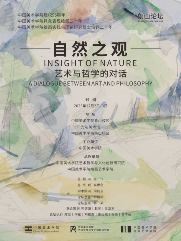 2023年12月2日至3日,“象山论坛——自然之观——艺术与哲学的对话”在中国美术学院举行。此次论坛由中国美术学院主办,中国美术学院艺术哲学与文化创新研究院和中国美术学院绘画艺术学院承办。论坛围绕“自然之观”的主题,从存在论层面展开艺术与哲学的深层对话,通过“中国山水与现象学”、“言意之辦与具象表现绘画方法”、“道法自然与模仿论”等议题,共同探讨人在世界中的真实性与诗性,重新探求当今时代艺术的存在与价值,重建绘画的深度。