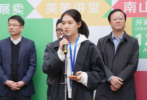 入选青年艺术家代表胡明希发言,号召同学们走出校园,走入社会,用专业特长为全民美育贡献力量