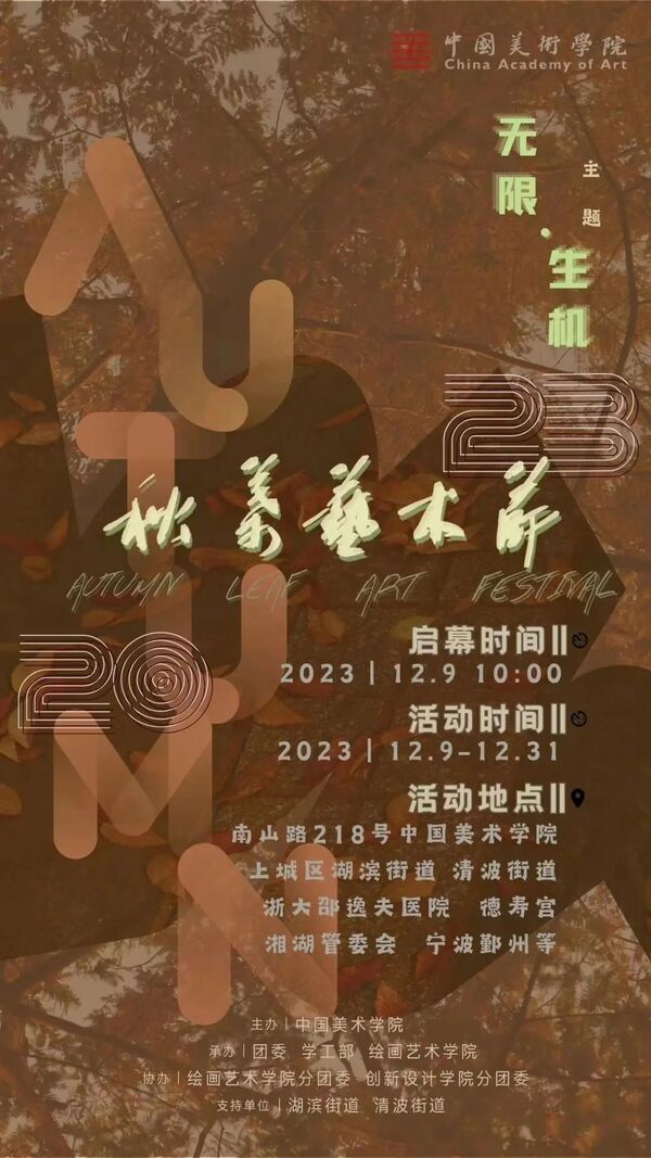 12月9日,中国美术学院大学生创意生活节暨秋叶艺术节在中国美术学院南山校区拉开帷幕。此次艺术节主题为“无限·生机”,旨在以艺术之名、秋叶之美、青春之美,为杭城带来一场蓬勃生机的艺术节日。