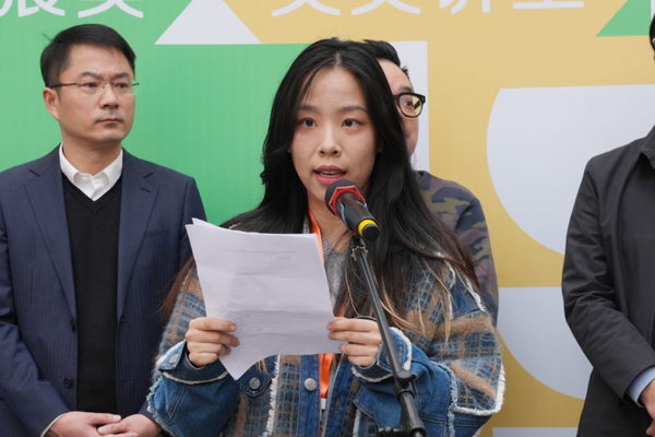 本次活动策划团成员代表沈修平发言,并代表志愿者们作出承诺,表示将以最温暖的服务带大家徜徉艺术海洋
