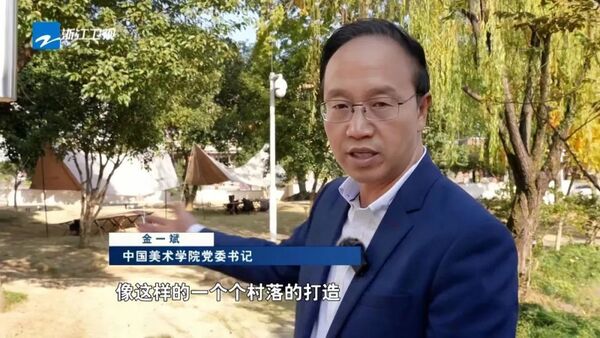 中国美术学院党委书记 金一斌:像这样的一个个村落的打造,也是我们践行习近平文化思想很重要的一个举措,我们把我们的作品写在大地上,这些都跟我们中国美院的专业建设都是结合在一起的。