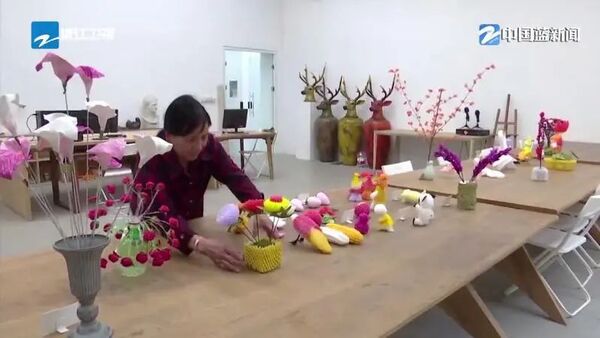紧接着,村公所、茶奥花海……一件件美院“作品”推开了长埭村的艺术之门,也开启了村民们的“艺术人生”。66岁的李彩玉是一名保洁员,废纸塑料在她手里,变成了一个个小玩偶和水果鲜花,去年美院团队还为她办了一场个人艺术展。
