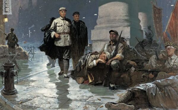 《拂晓》 肖峰 宋韧 布面油画 180mx350cm 1979年 中国美术馆藏