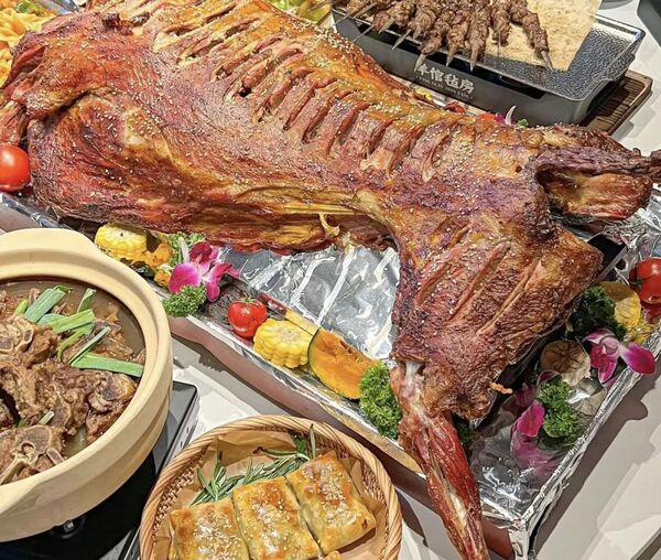 热红酒、牛排、羊肉串、淀粉肠等美食