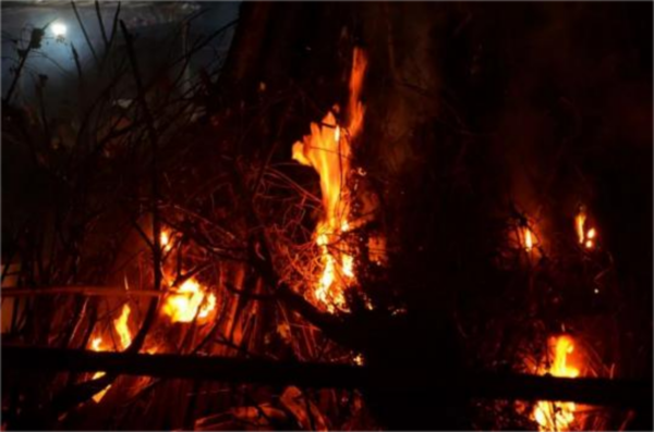 熊熊的篝火在冬⽇静谧的夜晚闪烁跳动