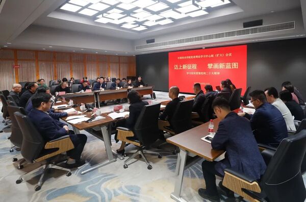 10月17日,中国美术学院召开党委理论学习中心组(扩大)会议,传达学习习近平总书记在中国共产党第二十次全国代表大会上的报告精神,对学习贯彻工作作出部署。党委书记金一斌主持会议并讲话,院长、党委副书记高世名作中心发言,中心组成员交流学习体会。