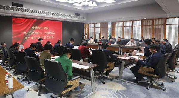 10月17日下午,中国美术学院学习贯彻党的二十大精神会议暨二级党组织书记例会在南山校区南苑会议室召开。会议深入学习领会党的二十大精神,以党的二十大精神为指导,对标习近平总书记对我校工作的重要指示和期望,围绕“双一流”建设等学校中心工作,对下一阶段党建工作进行全面部署和推进。校党委书记金一斌出席会议并讲话。校党委副书记孙旭东、刘正,党委委员、纪委书记方培新,党委委员、组织统战部部长兼人才办主任徐国强,二级党组织书记及党委工作部门负责人参加会议。会议由刘正主持。