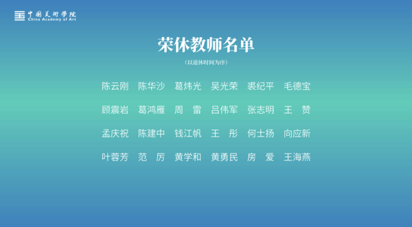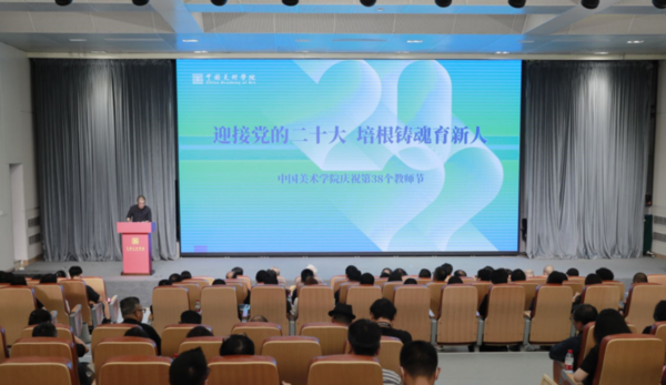 2022年9月9日,在第38个教师节来临之际,中国美术学院举行教师节庆祝大会暨荣休仪式,表彰在一线教学中涌现的优秀教师、教学团队。中国美术学院党委书记金一斌、院长高世名讲话。党委领导班子成员孙旭东、刘正、方培新、沈浩、傅巧玲、韩绪、徐国强、余旭红为受表彰教师颁奖,副院长曹晓阳主持大会。