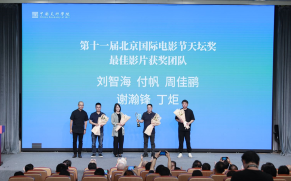 副院长韩绪为第十一届北京国际电影节天坛奖最佳影片、最佳摄影奖获奖团队刘智海、付帆、周佳鹂、谢瀚锋、丁炬、宓鑫君颁奖
