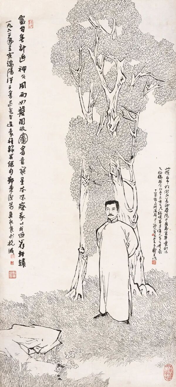 吴永良 《白描鲁迅先生造像》 中国画 139cmx64cm 1962