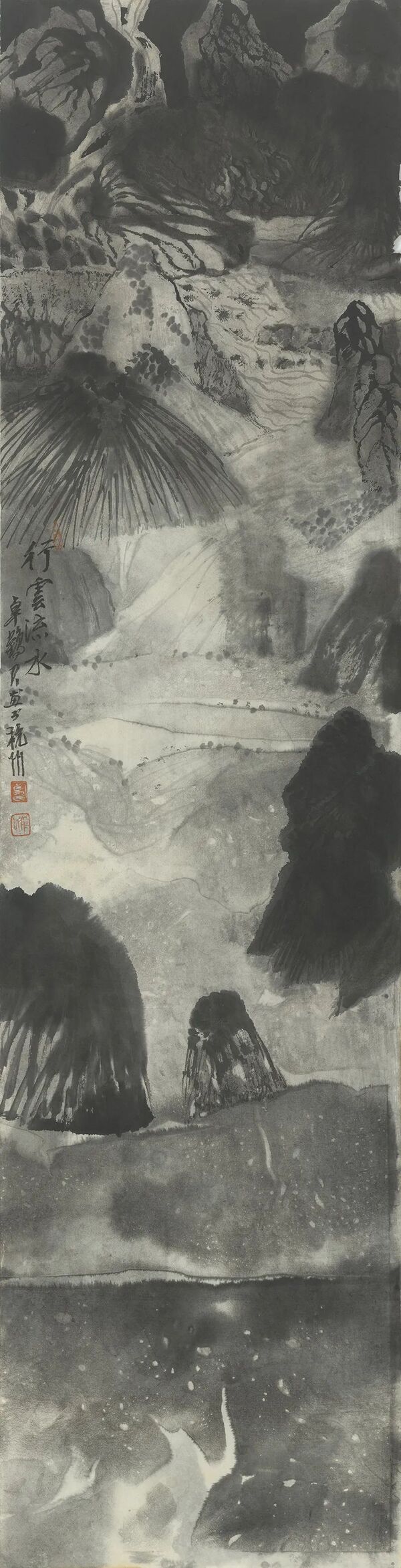 卓鹤君 《行云流水》 中国画 137cmx35cm 1985