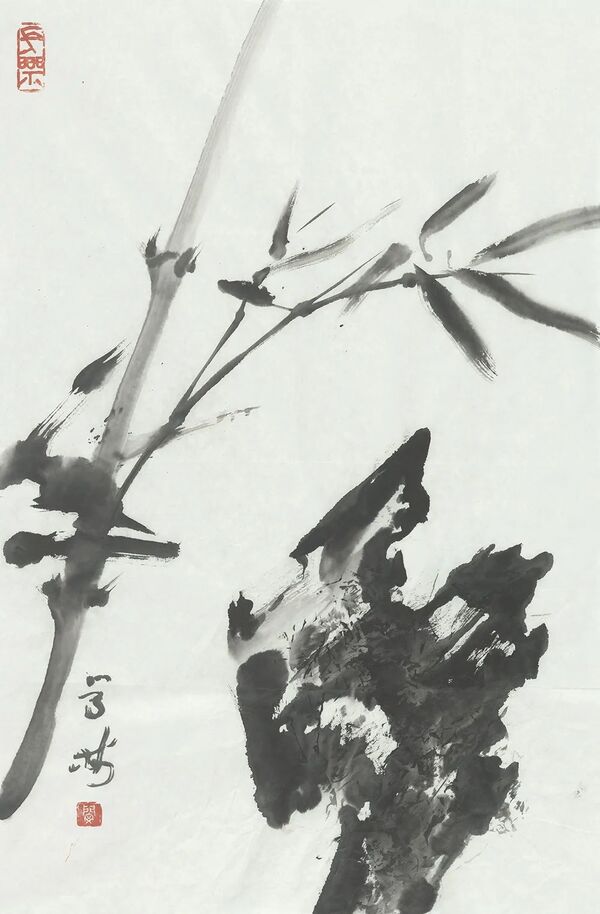 闵学林 《竹石图》 中国画 68.5cmx45.5cm 2022