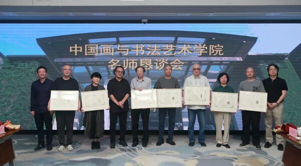 9月13日,中国美术学院中国画与书法艺术学院名师恳谈会在南山校区召开。中国美术学院院长高世名,副院长沈浩,党委委员、宣传部长、美术馆博物馆群副馆长余旭红出席。恳谈会上,李子侯、马其宽、徐家昌、卓鹤君、王冬龄、闵学林、吴宪生、朱红、高晔、顾真等老教授及家属深情回顾学院发展历程,畅谈教学研创及学科发展愿景,围绕中国画与书法专业建设、教学研创、传承与创新等方面展开了深入探讨,为学校发展建设建言献策。高世名、沈浩、余旭红向老教授及家属颁发作品捐赠证书。