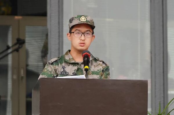会上,艺术人文学院新生邹亦轩代表参训学生发言。他分享了军训生活的感受和收获,表达了继承学校的优良传统,坚守使命精神,刻苦努力、坚定意志,为中华民族伟大复兴而奋发学习的决心。