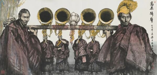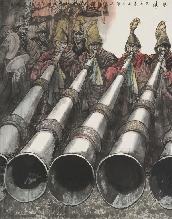 高原号声 中国画 192×402cm 2006年 浙江美术馆藏