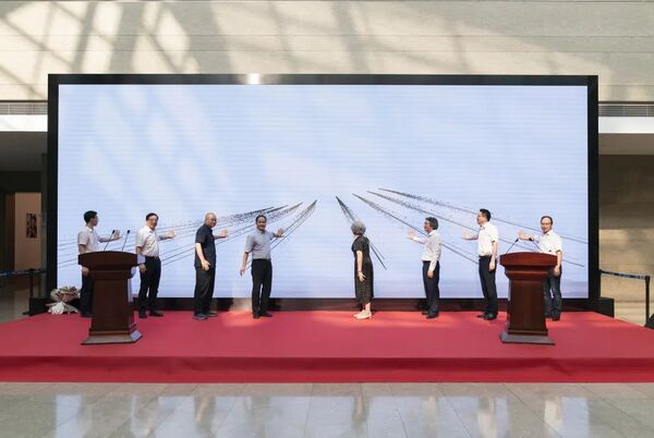 王昌荣、盛昌黎、许江、马锋辉、来颖杰、陈广胜、杨守卫、金一斌共同为展览启幕。