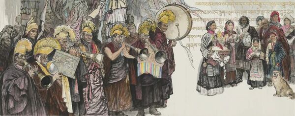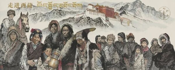 走进西藏组画(局部) 中国画 140×3300cm 2002年 浙江美术馆藏