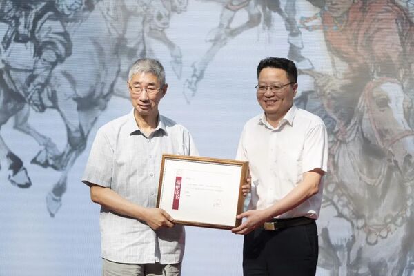 浙江省文化和旅游厅党组书记陈广胜向梁平波颁发捐赠证书,梁平波致答谢辞。