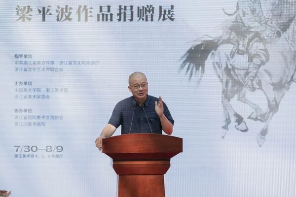 7月30日下午,由中共浙江省委宣传部、浙江省文化和旅游厅、浙江省文学艺术界联合会指导,中国美术学院、浙江美术馆、浙江省美术家协会主办,浙江省国际美术交流协会、浙江出版书画院承办的“阳光史诗——梁平波作品捐赠展”在浙江美术馆开幕。