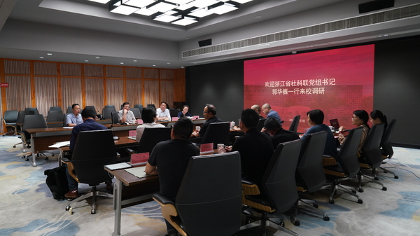 6月7日下午,省社科联党组书记、副主席郭华巍一行来校调研。中国美术学院党委书记金一斌介绍了学校的总体情况和发展成就,校长高世名陪同导览毕业展。校党委副书记刘正,副校长沈浩、韩绪,党委委员、宣传部部长余旭红等陪同调研并出席座谈会。