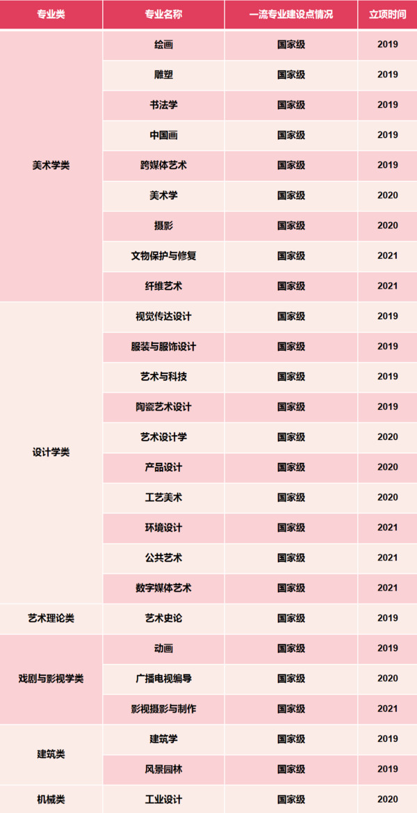 自2019年首批一流专业建设以来,中国美术学院28个招生专业中,26个专业获批国家级一流本科专业建设点,2个专业获批省级一流本科专业建设点充分彰显我校专业建设的显著成效!