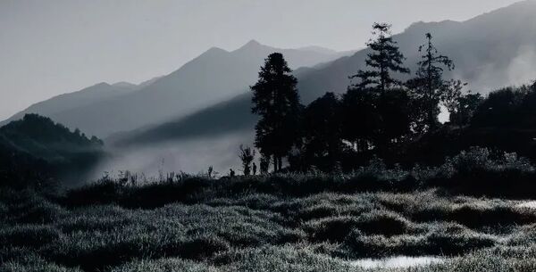上:浙南山林原本的颜色 下:影片处理成低饱和度、氤氲的诗意氛围