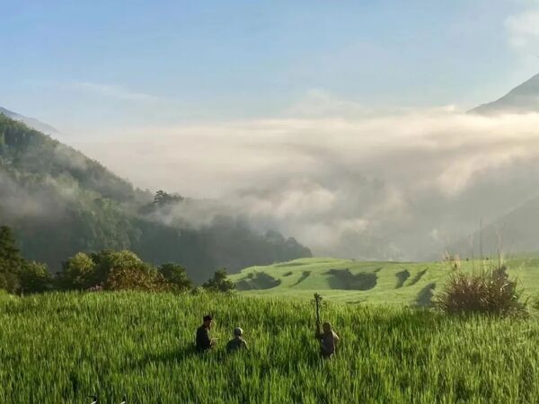 梯田里的戏,那些稻谷和叶子表面像锯齿一样,蹭在身上很疼的,我们的演员需要在里面一遍一遍地跑。 小哨子那个演员,才十一二岁,来的时候细皮嫩肉,第一天拍完了,小手上都是疤痕,都是稻谷割的。