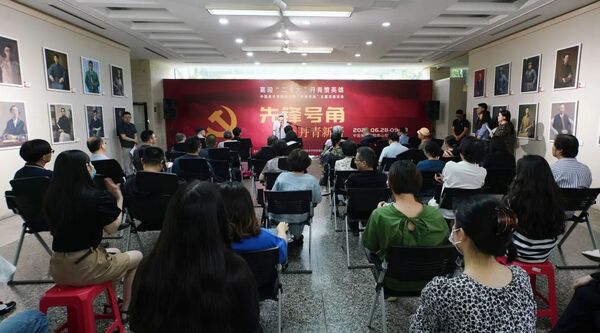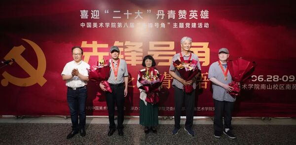 在全省上下喜迎二十大,学习贯彻浙江省第十五次党代会精神的热潮中,中国美术学院积极推进“全国党建示范高校”建设。6月28日上午,“喜迎二十大 丹青赞英雄”中国美术学院第八届“先锋号角”主题党建活动在南山校区举行。活动主要内容有“光荣在党50年”纪念章颁发仪式、分管领导总结部署党建工作、“先锋号角之丹青新语”展览开幕、南山校区预备党员宣誓、新老党员重温入党誓词等。