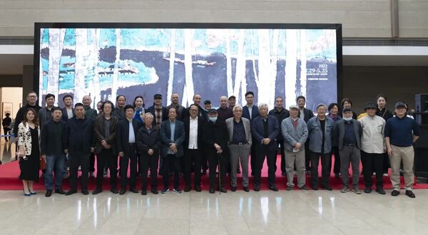 许江在贺电中表示,邬继德的彩墨绘画让人眼前一亮。他的这类画既可称作彩墨,也可称作水彩。通过拓、印、绘、染的结合,彩与墨交融,自有一份独特韵味。他的这类画,精品极多,《乌篷船》《林之秋》《山有秋田》《黄石山秋》,点线面排布,黑白灰叠化,跬成一类皮纸墨彩的风格,其核心之处都在于雕版肌理的活用。墨是体,彩是衣,线为节,排为律。山峦林树,叠次排布,形成富有韵致的节律。墨彩相济,沉艳交织,满纸辉映成趣。一树生千树,一帆催百帆,叠次栉比的文法,铺陈夏花烂漫,冬树幽黄,东山雄阔,西潭苍茫。