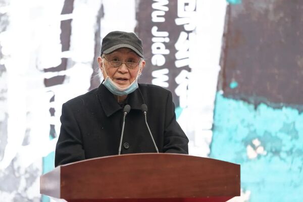 中国美术学院教授、版画界的老前辈、邬继德的研究生导师赵宗藻讲话