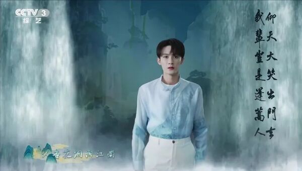 节目以创新设计学院罗珏、刘馨雨等同学创作的优秀作品《唐诗之路·浙东诗径连类》为基础,结合书法展示,借助影像、数字化展演等新媒体手段,以艺科融合的方式,让观众身临其境,漫游山水,跨越千年,与唐代诗人李白对话相遇,带来全新的视觉体验,诠释了中国青年“愿乘长风破万里浪”的勇气与决心,呈现了一条风光秀美、气势恢弘、展示文化自信的新时代诗画之路。