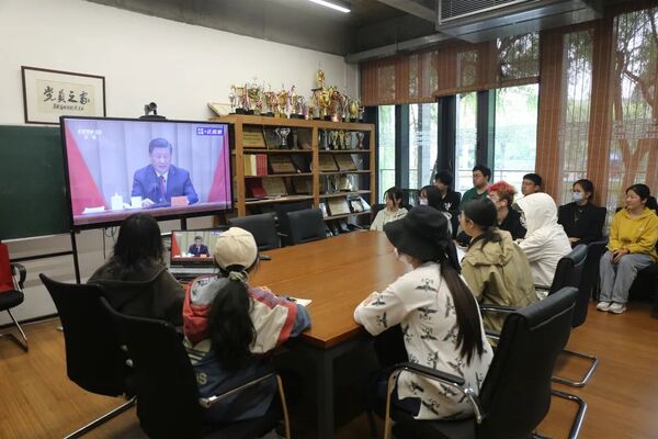 中国美术学院师生集中观看庆祝大会。大家纷纷表示,要牢记习近平总书记的嘱托,坚定不移跟党走,在青春的赛道上踔厉奋发,不负韶华、不负时代、不负人民。