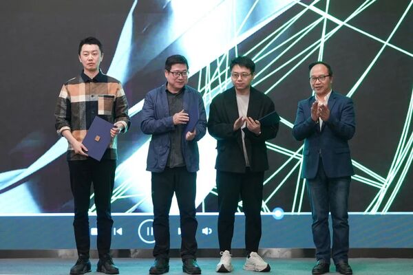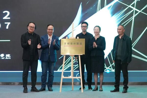 中国美术学院党委书记金一斌、院长高世名,浙江省教育厅二级巡视员庄华洁、浙江省社科联二级调研员涂尚建、文创设计智造实验室主任王昀共同为“文创设计智造(Design-AI Lab)教育部哲学社会科学实验室(培育)”揭牌。