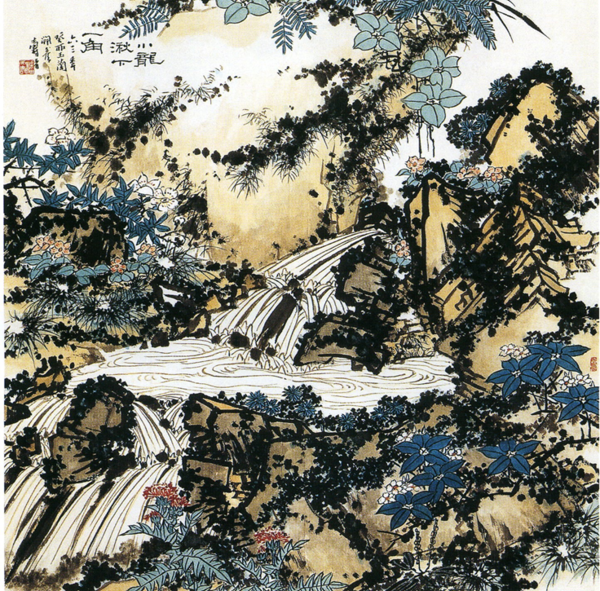 作为艺术家,潘天寿先生直面现代之挑战,接续优秀传统之正脉,倡导“至大、至刚、至中、至正之气”,力创沉雄奇崛、浩大刚正的画风;以其风骨遒劲、清朗明豁的宏章巨构,在千年中国画史中独树一帜。他从雁荡得法,在他的笔下,雁荡山中的无名角落,呈现为一个汉赋般精彩丰富的世界。断涧寒流剪裁巧妙,山花幽草烂漫缤纷,画面中所有事物都以沉着霸悍之笔出之,聚合而为一种盛大繁茂的勃勃生机。花草木石在画面上仿佛都是不同乐器演绎出的不同声部,一切即时生发、万象纷呈,一切笔笔分明、精确无比,如同一部恢宏华美的交响乐章。