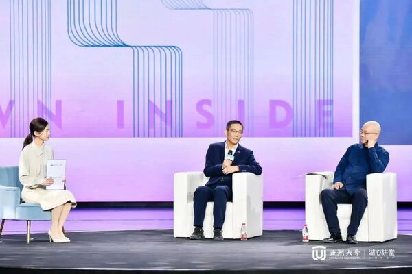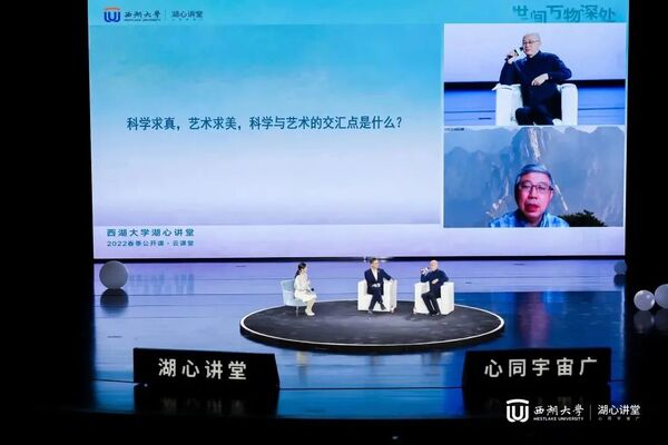 田刚分享的数学之美和许江提出的美育之思,都引发了大家对美、对万物的思考。在最后的对话环节,田刚、许江与西湖大学校长施一公围绕着科学与艺术,一同行至万物深处——