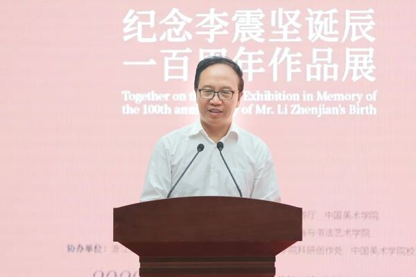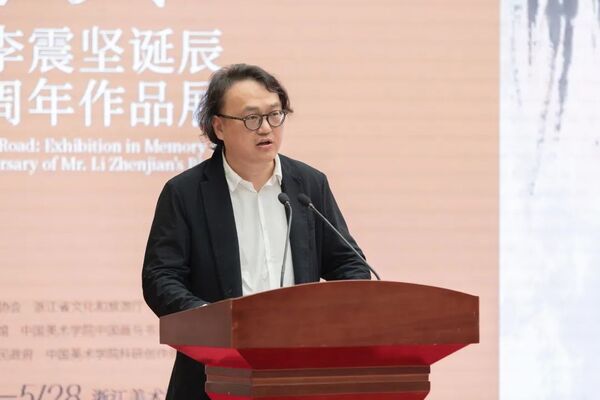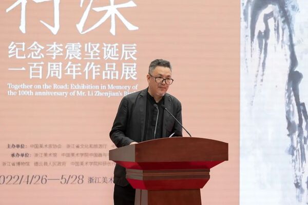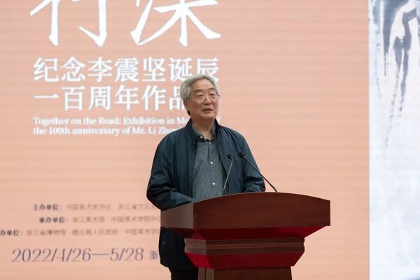 许江代表浙江省文联向展览开幕表示热烈祝贺,并向近现代浙江人物绘画改革的一代先驱李震坚先生表达深深的敬意。他指出,新世纪以来,中国美院中国画作为学校的高端之系,举办了众多卓有影响的学术活动。浙派人物画的开创与持续发展,成为浙江人文学术梳理和讨论的、让我们不断重返、逐跡运思的一个源点。李震坚作为浙派人物画的五老中的先驱,他的艺术创造具有三方面的历史意义:一是人民性的创作思想与民族绘画语言的相互促新;二是现实主义造型观念与传统笔墨的深度融合;三是生活激情与师者蔼然的互促互通。他强调,中华文化是我们同行的大道。李震坚先生是大道同行中杰出的贤能者、卓越的深行者。他的艺术的展示与研究具有特殊而重要的意义。