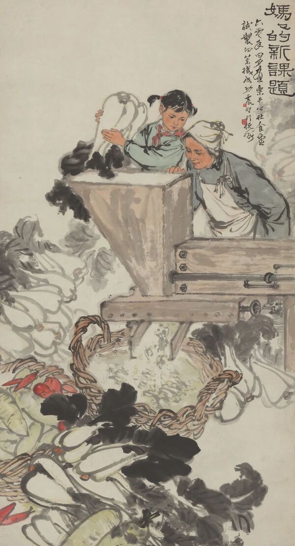 妈妈的新课题 1960年 146.5cm×79.2cm 浙江美术馆藏