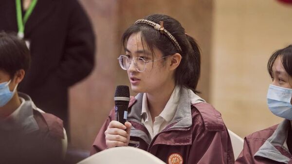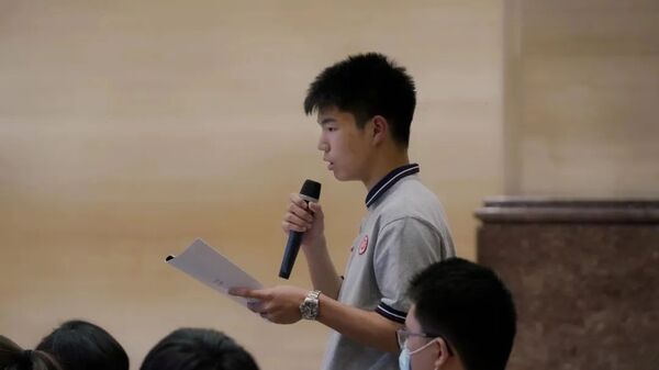 来自杭州高级中学的谌弘毅同学第一个“抢麦”分享了自己的观点:“虽然我从小喜欢诗歌,但以前都是就诗歌论诗歌,今天让我开始跟随老师们的视角去思考如何诗意的生活在这个世界上,让诗歌浸润诗歌的方方面面。”